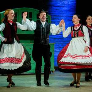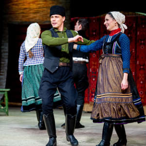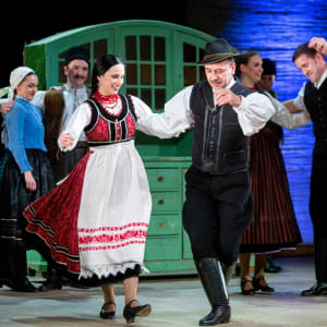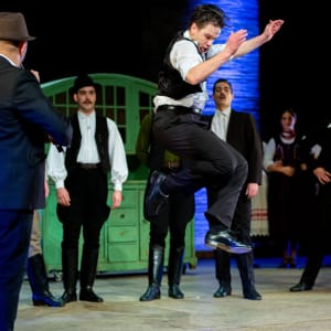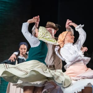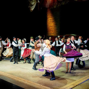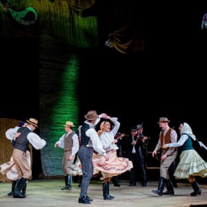 Szólót énekelnek a Magyar Nemzeti Táncegyüttes táncosai.